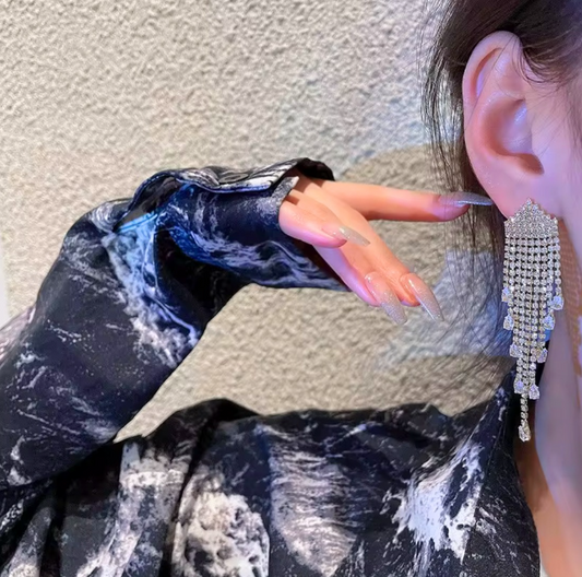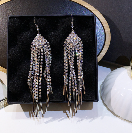 Fashionable Drop Earrings Featuring Lightweight Tassels and Brilliant Diamonds