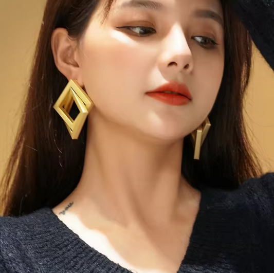 Eye Catching Oversized Double Layer Geometric Pattern with Dynamic Shapes Earrings