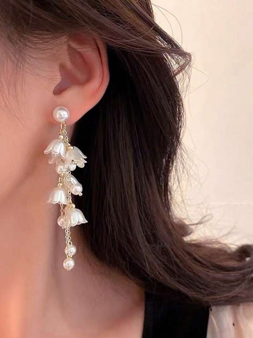 Beautiful Korean Flower Drop Hoop Earrings Showcasing Lovely Floral Accents