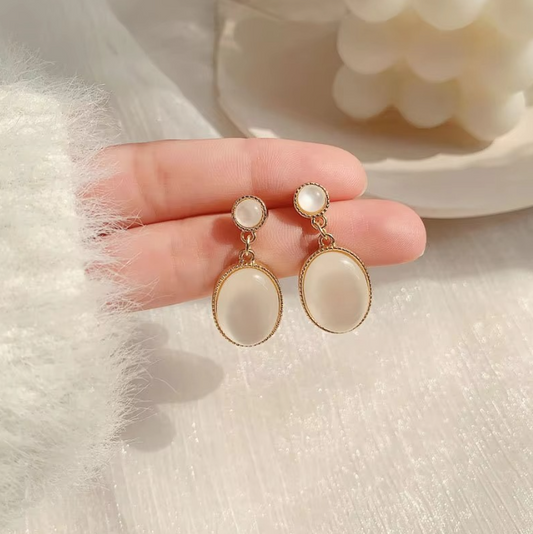 Beautiful Opal Oval Drop Earrings Showcasing a Radiant Glow
