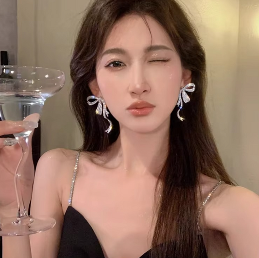 Glamorous Oversized Bow Knot Earrings Set with Sparkling Rhinestones