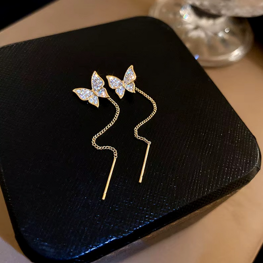 Beautiful Inlaid Zircon Butterfly Earrings with Delicate Tassels