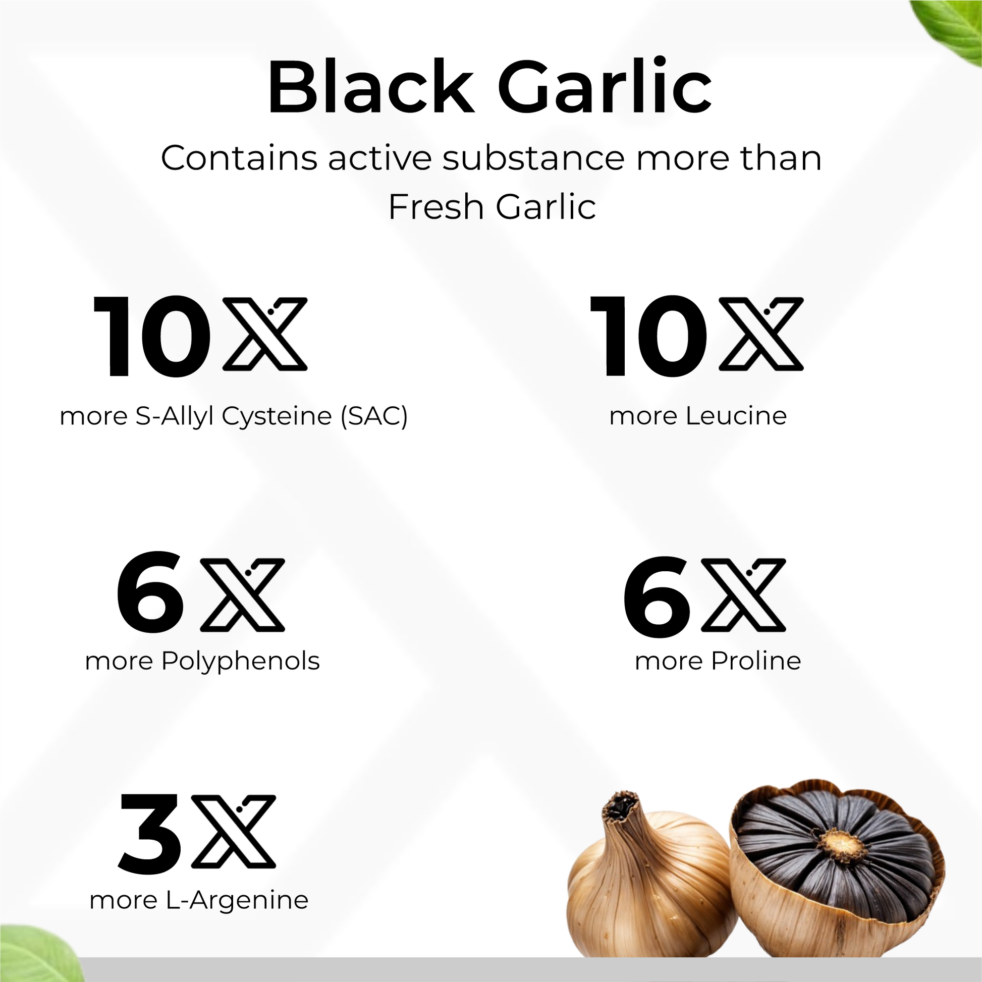 NUTRIENT-RICH: Black Garlic is a concentrated source of naturally occurring vitamins, minerals, and antioxidants like S-Allylcysteine, developed through a natural fermentation process.